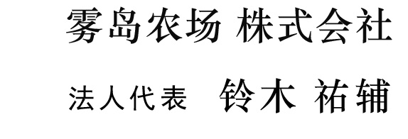 | 商 号 | 霧島ファーム株式会社 雾岛农场股份有限公司 |
