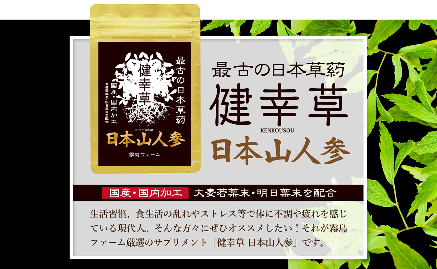 ブログ「霧島ファームの自信作「健幸草 日本山人参」をご紹介します!」を更新いたしました。ぜひご覧ください。